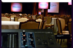 A switching device was used to change between the PowerPoint presentation, a DVD player, and a "splash" screen which carried the company's logo for use during transitions between presenters. This allowed Reid Sound technicians to switch presentations without the attendees being aware of the change, while still leaving an image on the screen and avoiding "dead air".